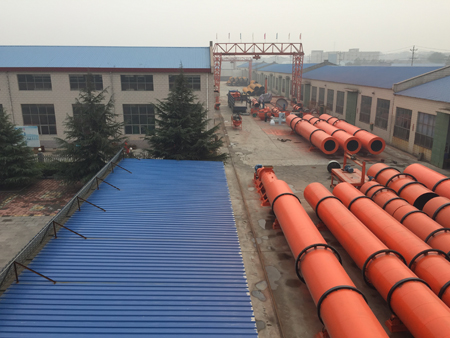 7.轉筒烘干機采用無級變速傳動,可根據物料水分的不同而方便的調節轉筒的轉速,以達到好的烘干效果。滾筒的傳動為鑄鋼金加工齒輪圈傳動,傳動平穩可靠。